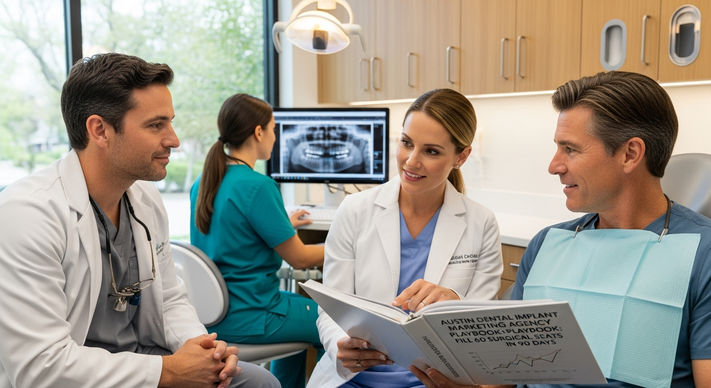 Channel one is high-intent Google Ads pointed at "Austin dental implant marketing agency" variants plus suburb modifiers. We run single-keyword ad groups, pair them with call-only extensions, and route every lead into our AI appointment center so calls are answered inside 60 seconds. Channel two is the organic engine: long-form city pages, comparison guides, and patient financing stories published inside landing page platform and interlinked with the Dental Marketing Agency pillar. Channel three is the referral loop where oral surgeons trade overflow in exchange for branded nurture kits.
