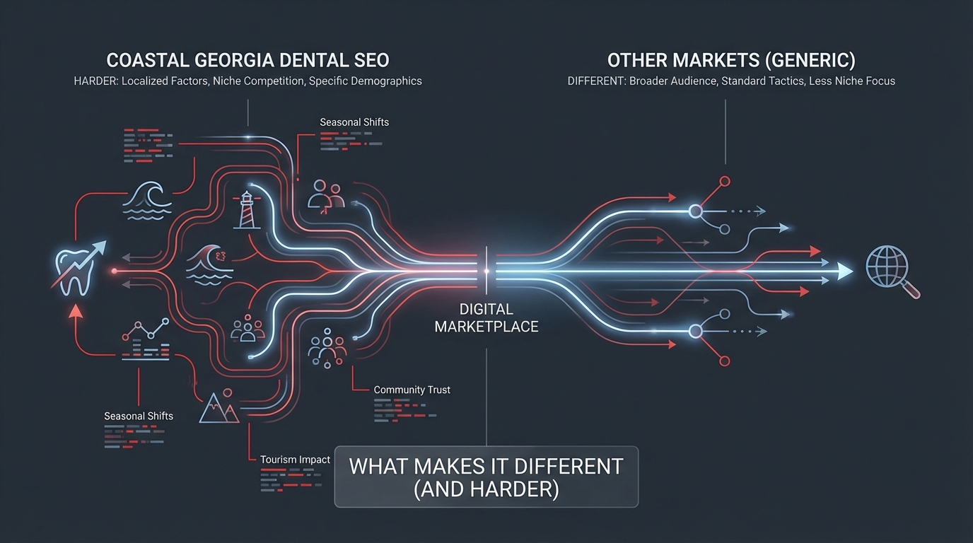 If you've ever tried to apply standard dental SEO advice to a practice in Savannah, Brunswick, or St. Simons Island — and wondered why the results feel inconsistent — you're not imagining it.