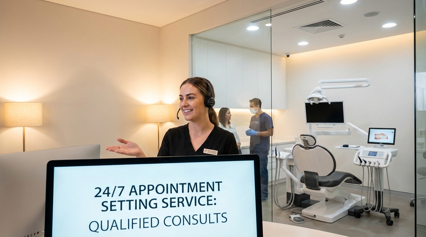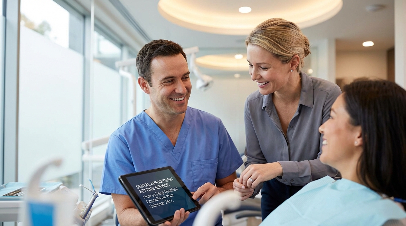 Most practices leak revenue between the first inquiry and the actual consult. Without a dedicated dental appointment setting service, phones roll to voicemail, web leads wait hours, and nobody owns the follow-up. The practices winning implants, clear aligners, and full-arch cases all have one thing in common: their appointment setting runs like a sales floor, not a front desk.