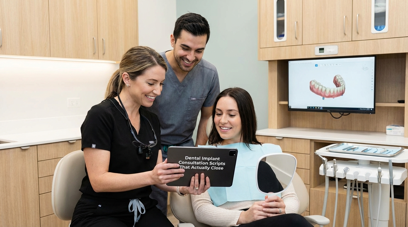 The average dental implant consultation has a 30–45% same-day close rate at most practices — but elite dental teams consistently close 60–75% of implant cases. The difference isn't price, location, or even the quality of the clinical work. It's the script.