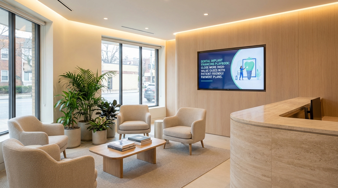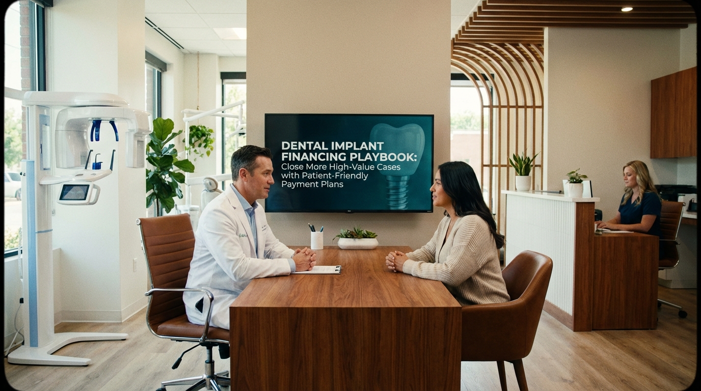 High-value implant cases can lift revenue by tens of thousands of dollars per patient, but they rarely close when price is the only conversation. Most practices still treat financing as a “maybe” instead of a revenue product, which leaves implants on the table and your consult books half-full. This playbook makes financing a feature, not a footnote — showing you how to design a patient-friendly payment plan, train the team, and shout it from marketing channels so you attract the patients who need implants and have the ability to pay for them.