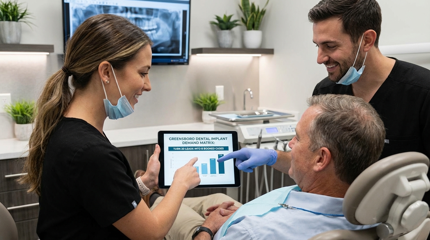 The Greensboro Dental Implant Demand Matrix fixes that. Instead of spinning up random ads, we architect a system that pairs BOFU keywords, vertically specific messaging, and CRM automations that move prospects from curiosity to funding in days. This guide walks through the four pillars: signal-rich demand intel, a content + ads engine that pre-frames value, consult workflows that never drop a lead, and KPIs that prove the pipeline is healthy. If you want eight or more booked implant cases from every 20 leads, this is the playbook.
