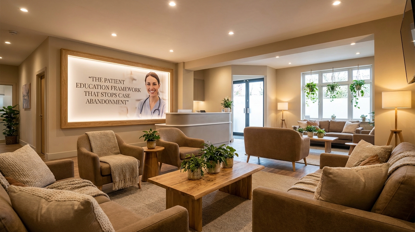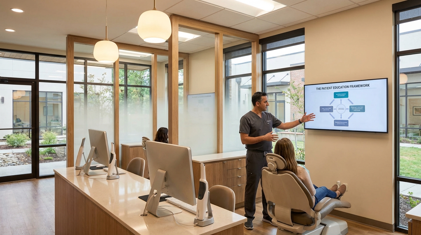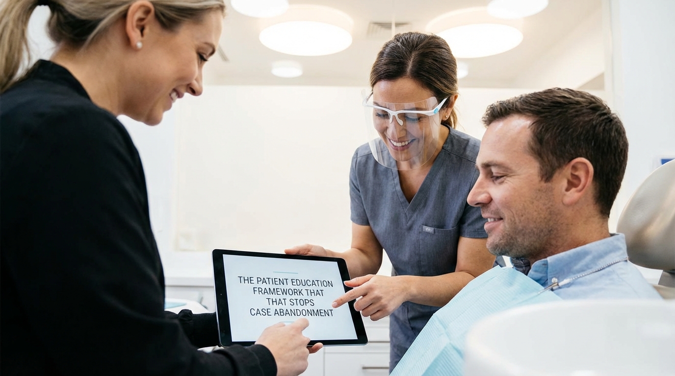 Keywords (BOFU): patient education framework, case abandonment, implant consult follow-through, dental patient education, education-driven conversions, treatment acceptance