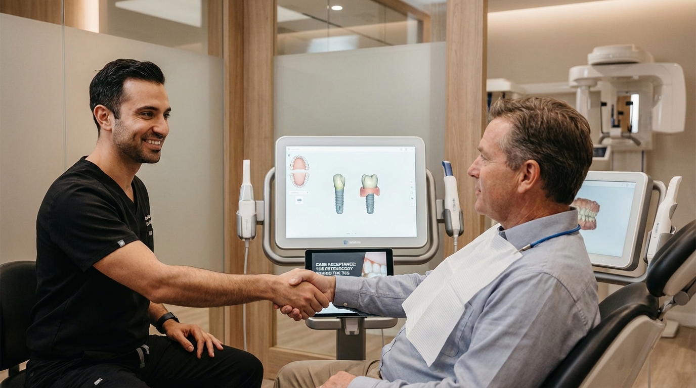 The average dental practice leaves 30-50% of implant revenue on the table through low case acceptance rates. If you're accepting 50-60% of cases, improving to 70%+ could mean $50,000-$150,000+ in additional annual revenue — without acquiring a single new patient.